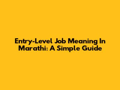 Entry-Level Job Meaning In Marathi: A Simple Guide