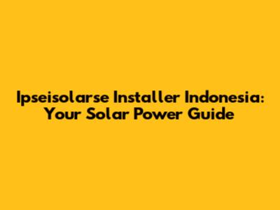 Ipseisolarse Installer Indonesia: Your Solar Power Guide