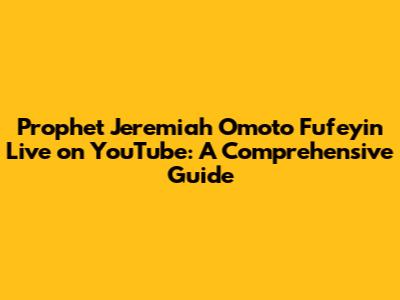 Hey everyone! Are you ready to dive into the world of faith and spirituality? Today, we're going to talk about Prophet Jeremiah Omoto Fufeyin, a prominent figure in the Christian community, and how you can catch his live services on YouTube. If you're looking to deepen your spiritual connection, find inspiration, or simply witness powerful messages, you've come to the right place. We'll explore everything from where to find the live streams to what makes Prophet Fufeyin's ministry so compelling. So, grab a seat, get comfortable, and let's get started!