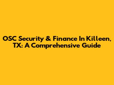 OSC Security & Finance In Killeen, TX: A Comprehensive Guide